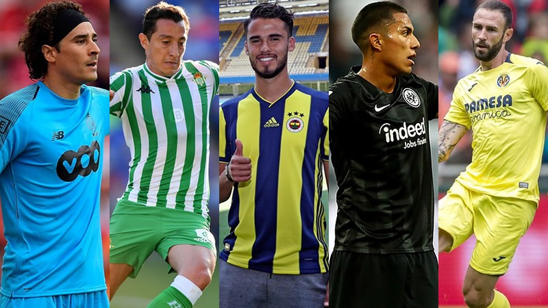 Pero ahora serán cinco: Guillermo Ochoa (Standard de Lieja), Andrés Guardado (Betis), Miguel Layún (Villarreal), Diego Reyes (Fenerbahce) y Carlos Salcedo (Eintracht), mientras que en Champions: Chucky Lozano y Erick Gutiérrez (PSV), además de Héctor Herrera y Tecatito Corona (Porto).