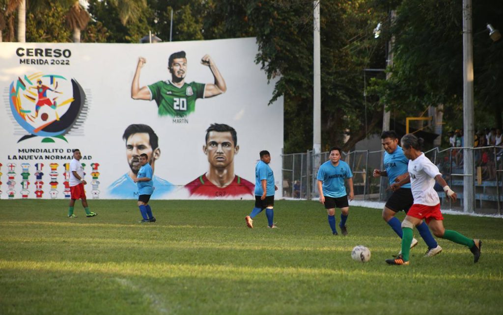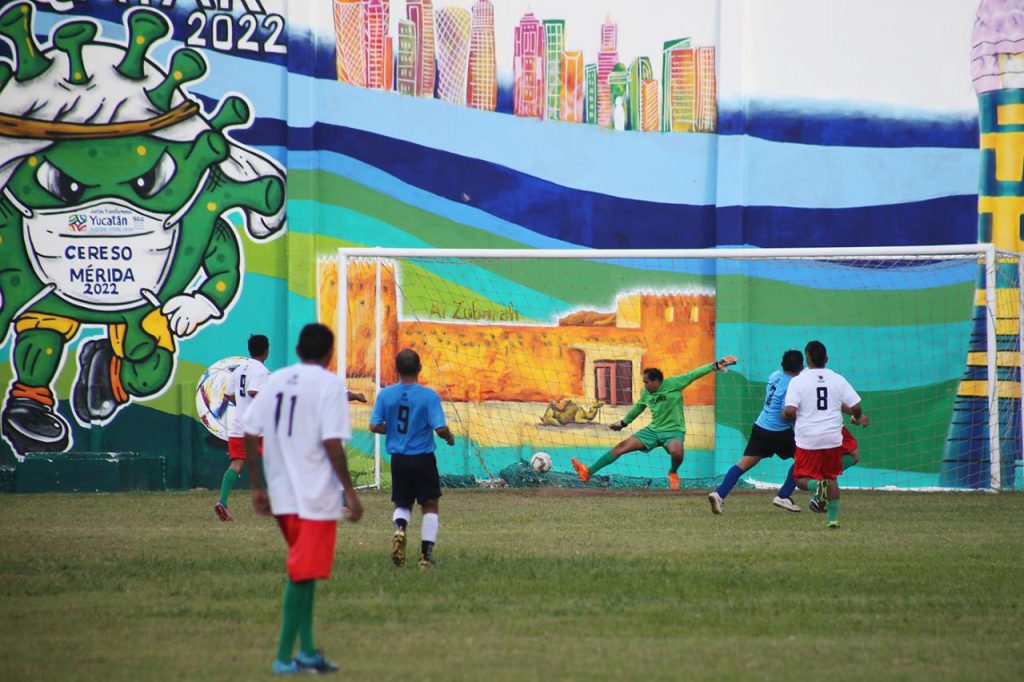 Mérida, Yucatán, 4 de diciembre de 2022.- Tras concluir la fase de grupos, México encabeza a los 16 equipos que avanzaron a la ronda de octavos de final del Mundialito 2022 del Centro de Reinserción Social (Cereso) de Mérida, torneo de fútbol único en su tipo en el país, dentro de un centro penitenciario y que es promovido por el Gobernador Mauricio Vila Dosal.