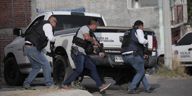 Fotografía de archivo de personal de la Policía de Investigación que realiza un operativo en la zona de donde ocurrió un tiroteo en la ciudad de Morelia, estado de Michoacán (México). EFE/Iván Villanueva