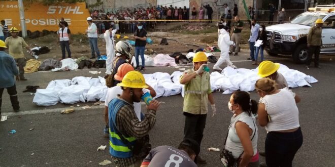 El saldo mortal por la volcadura de un tráiler donde viajaban al menos 160 migrantes centroamericanos en Tuxtla Gutiérrez, Chiapas, se mantiene en 55. Decenas continúan hospitalizados, otros más apenas están procesando la dimensión de la tragedia.