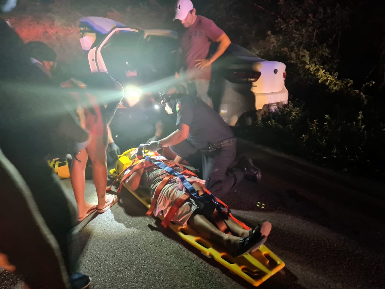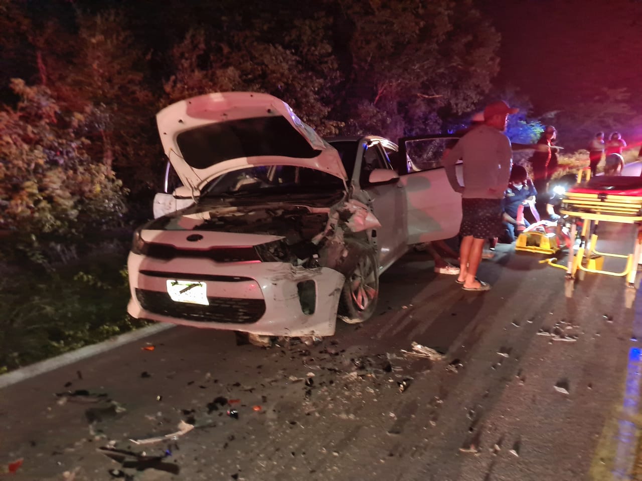 En el auto de color blanco iba a bordo una familia con rumbo a su natal Celestún, cuando alrededor de las 11:30 de la noche del jueves un despistado guiador de la camioneta placas (TA4738G) que jalaba con dirección a Mérida, por razones ignoradas se cruzó apenas del otro carril para causar la colisión. Debido a un par de kilómetros del retén de Chunchucmil donde estan instalado elementos de la Secretaría de Seguridad Pública, arribaron de inmediato para solicitar dos ambulancias. Por lo que llegaron rato después parámedicos de la Policía Municipal, de la unidad 21-G de la SSP, así como de la Cruz Roja Mexicana.