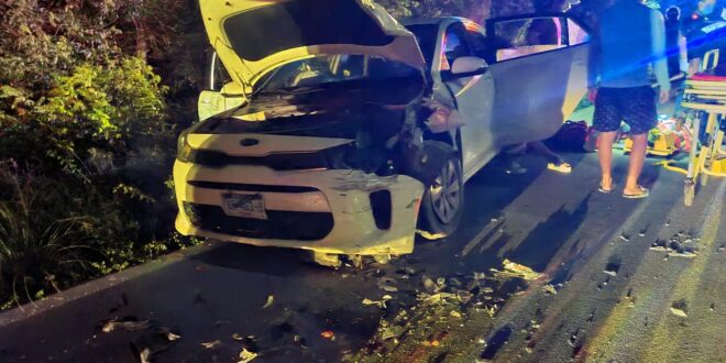 Le comentamos que los dos involucrados en este accidente con suerte son vecinos del municipio costero, y presuntamente el guiador de una troca Chevrolet, es el que protagonizó al invadir el carril contrario para impactar frontal a un automóvil KIA.