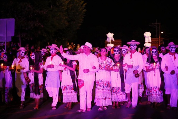 A las 20 horas y luego de una breve ceremonia tradicional, las puertas del Cementerio, simbolizando el inframundo, se abrieron para dar paso a la columna de ánimas encabezada por Renán Barrera y su familia, con más de 500 ánimas que, con velas en mano, dieron forma a la procesión para recordar a las almas que, según la tradición, llegan en estos días a visitar a sus seres queridos.