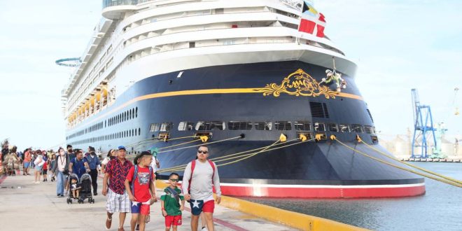 -Con 2,597 pasajeros y 1,014 tripulantes a bordo, el crucero de la naviera Disney Cruise Line arribó por primera vez a la costa yucateca.