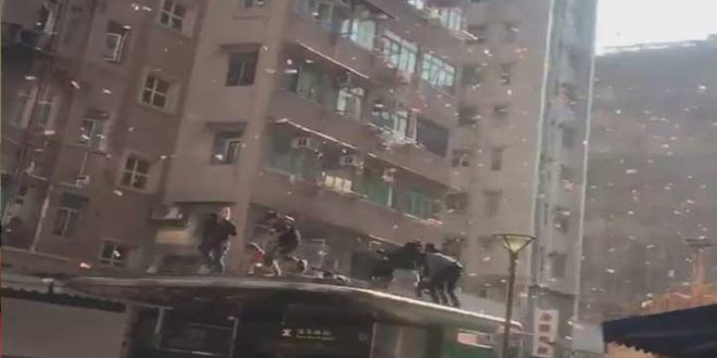 El sábado, las redes sociales se llenaron de fotos y videos en los que se ve una lluvia de billetes de cien dólares hongkoneses, mientras una multitud frenética intenta agarrar el dinero.