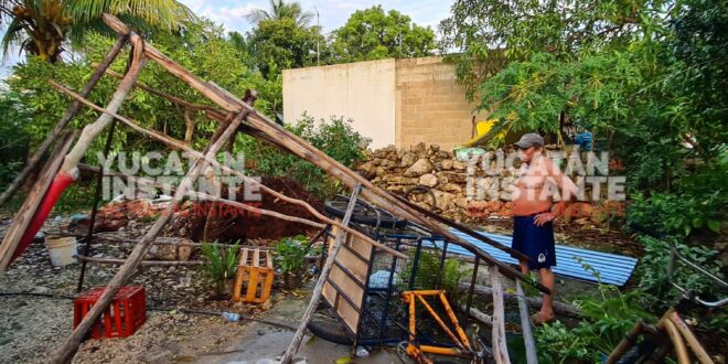 En esta última comunidad de la zona Poniente, hasta el cierre de esta nota, al menos tres vecinos quedaron con fuertes daños en sus casas de la colonia Japón. Incluso las familias relataron que la ‘turbonada’ sólo duró de 2 a 3 minutos, aventando láminas de zinc de tres cuartos, así como algunos árboles de mediano tamaño y hasta un tinglado del señor Manuel Jesús Quintal Alonzo (a) “Don Boruc” específicamente en mencionado sector situado al norte de esta población.