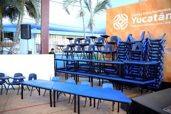 Esta entrega forma parte de la inversión de 17 millones de pesos que impulsa Vila Dosal para distribuir 26,620 piezas de nuevo y moderno mobiliario a 337 escuelas públicas de nivel básico, con lo que se beneficiará a 39,000 estudiantes. Esta inversión es 3 veces mayor a la que destinaba la administración estatal anterior, que era de 5 millones de pesos.