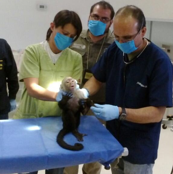 A 24 horas de su captura, el mono, un capuchino de garganta blanca, será sometido a observación médica y a una dieta especial.