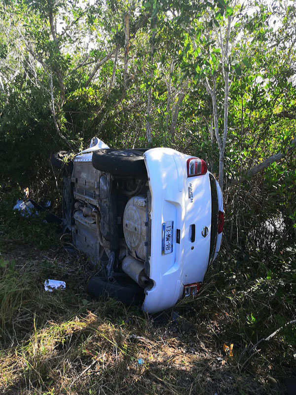 Celestún, Yuc., 09 de enero.- Miguel Angel M.A., de 65 años, vecino de Cuernavaca, Morelos, desafortunadamente fue el segundo que se accidenta en este 2020, en el tramo “salado” que une este puerto con Kinchil, tras reventar su llanta del vehículo rentado, y volcar la tarde del martes.