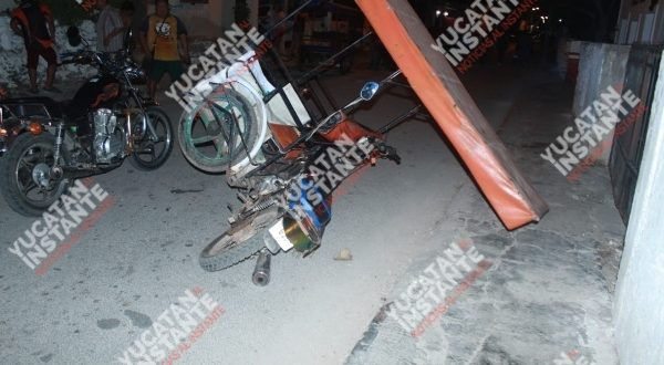 Kinchil, Yuc., 26 de febrero.- Un motociclista que circulaba apurado termino haciendo chuza a un mototaxi que guiaba Israel T.T., de 39 años, la noche de ayer martes en la calle 19 con 20 entre 22 del centro de este municipio.