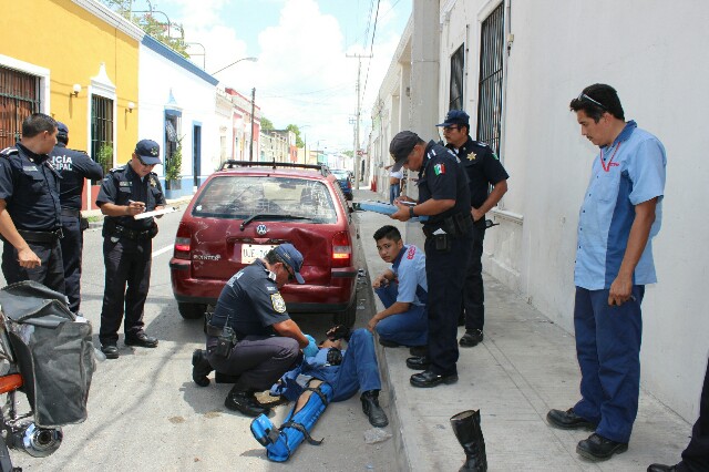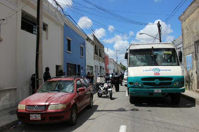 Hoy a las 11:30 horas la Policía Municipal de Mérida tomó conocimiento de un hecho de tránsito en la calle 52 entre 53 y 51 el que estuvieron involucrados el autobús ruta Santa Gertrudis Copo placas 8001-340-Y y la motocicleta placas Y6ZK3 conducidos por Candelario Martín A. M. y Ricardo S. C..
