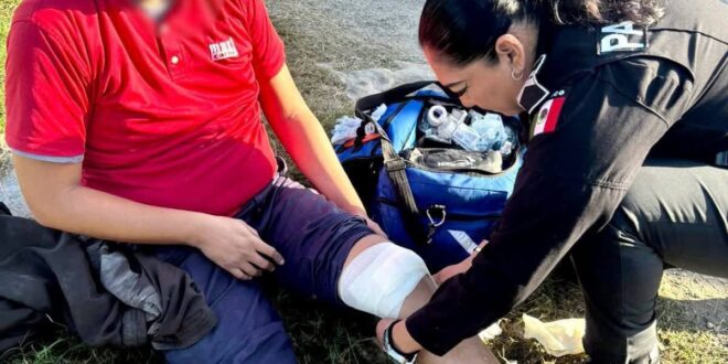 El conductor, identificado como Anthony Raúl A. C., de 29 años, perdió el control de su moto y terminó en el pavimento. Sufrió lesiones leves en la rodilla izquierda, por lo que recibió atención en el lugar por parte de paramédicos; no fue necesario trasladarlo a un hospital y logró retirarse por su propio pie.