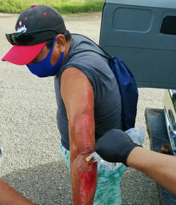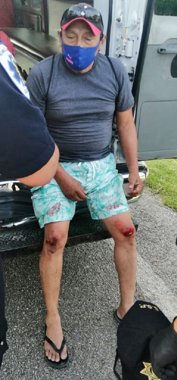 Don Eladio oriundo de la comisaría de San Bernardo, Kopomá guiaba el caballo de acero con placas 3FYM6, cuando a la altura del kilómetro 30, de citado tramo un can que salió intempestivamente a su paso, lo hizo perder el control del manubrio hasta arrastrarse en el pavimento varios metros. Por suerte Miranda Mena solo resultó con heridas abrasivas en brazos y pies, siendo atendido por parámedicos de la unidad Y-3 de la SSP; y no ameritó su traslado a un hospital.