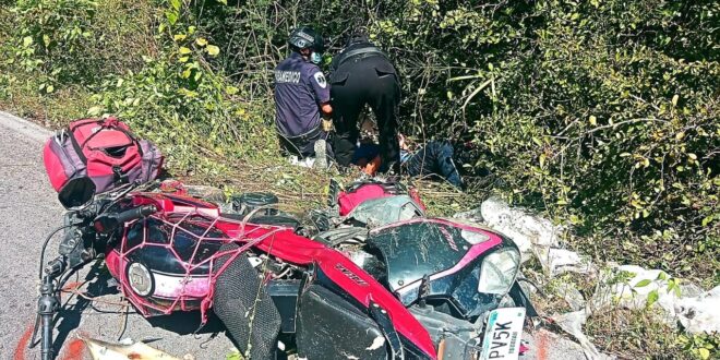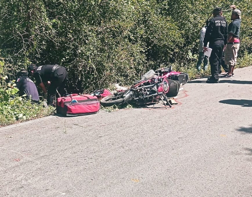 Hunucmá, Yuc., 24 de octubre 2021.- Un grave accidente en moto sufrió este domingo una familia al derrapar en carretera de Hunucmá, en el tramo intercomisarías Texán Palomeque-Dzibikak, y todo por un pedazo de nylon.