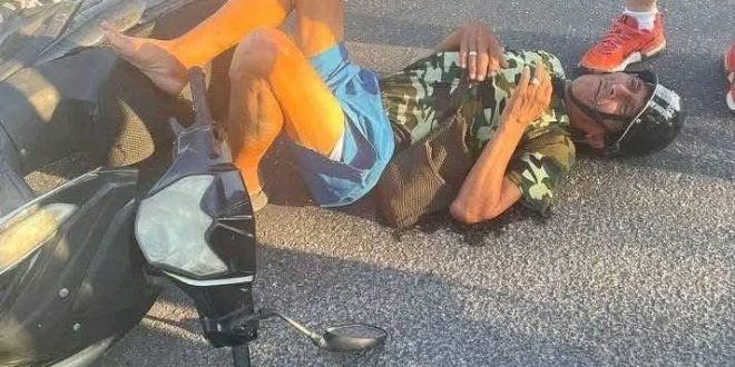 Tixkokob, Yucatán, 14 de mayo 2025.- Un motociclista fue atropellado este martes por la tarde mientras descendía del puente de Tixkokob con dirección a la colonia Amalia Solórzano.
