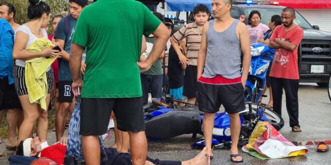 Por lo cual don Richard Oscar Uc Canul, 46 años, quien guiaba su motocicleta 150 cc., y pretendía ingresar a mencionada comunidad donde vive, terminó colisionando con el vetusto Volkswaguen. Ante el seco y mojado porrazo, testigos pidieron de inmediato ayuda. Al sitio arribaron primero elementos de la Policía Municipal y posterior oficiales de la Secretaría de Seguridad Pública, lo mismo que paramédicos de la unidad 21-L, de la SSP.