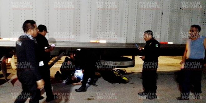 Samahil, Yuc., a 24 de octubre.- Por manejar su moto bajo los influjos del alcohol, Gertrudis Alejandro C.Ch., de 47 años, vecino de Kinchil, sobrellevó un fuerte derrape hasta chocar debajo de una pesada unidad estacionada en el mero centro de Samahil.