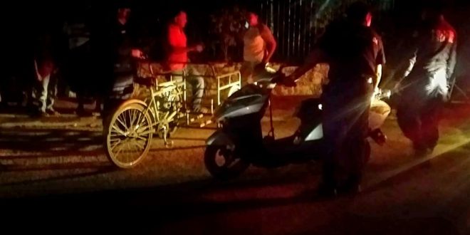 Hervin Moo Pacheco, de 28 años, guiaba presuntamente su caballo de acero automático, cuando no se percató de la señora Sonia Sonda Gómez, de 53 años, que manejaba un triciclo en centricas arterias de esta comunidad. Ante el llegue, la quincuagenaria salió aventada y azotó en el suelo.