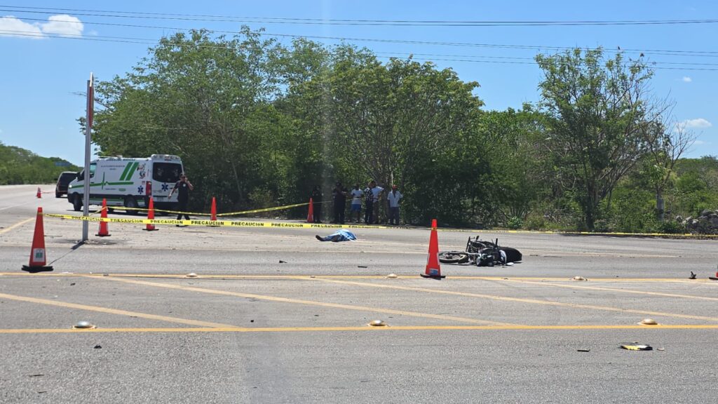 Kinchil, Yucatán a de 16 de abril 2026.- Una tragedia se registró poco antes de las 9 de la mañana en el cruce Tetiz–Kinchil, cuando un motociclista originario de la comisaría de Nohuayún, perteneciente a Tetiz, perdió la vida tras un fuerte accidente.