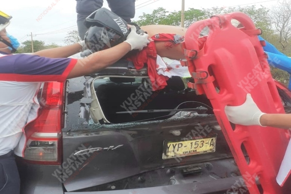 Autoridades relataron que gracias al casco cerrado que llevaba Mateo, le salvó la vida, pues se reventó con el medallón, voló por el aire y azotó en el techo del mismo automotor, de donde fue atendido por los paramédicos de la Policía Municipal, y de la Cruz Roja (Yuc-012).