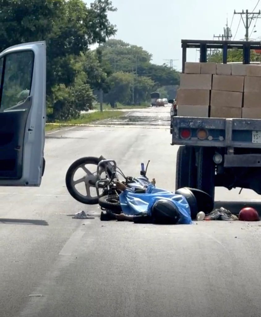 MÉRIDA, Yuc., 01 de octubre 2025.- La tarde de este miércoles un motociclista murió de manera instantánea y su acompañante quedó lesionado de gravedad luego que chocó contra la parte trasera de un camión de materiales en el kilómetro 6 del periférico, a la altura del puente de Dzununcán.