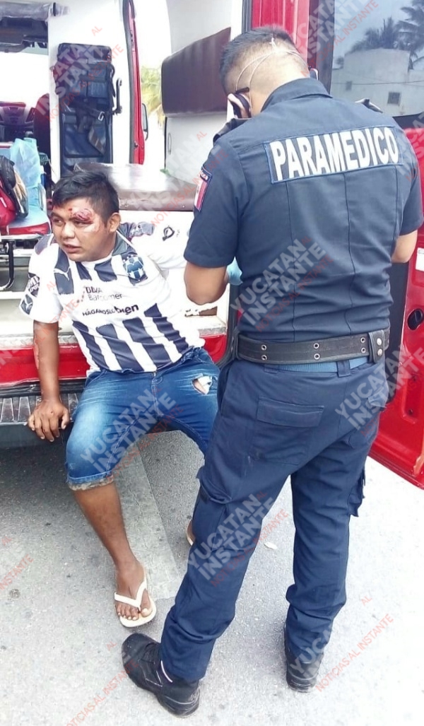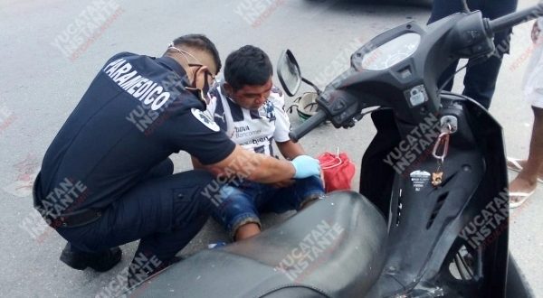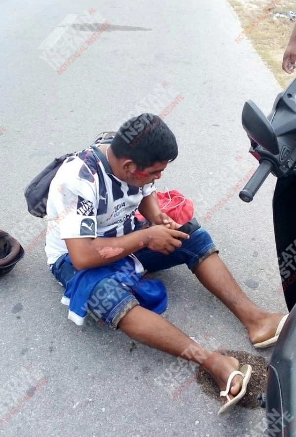 Según los hechos Juan Antonio T.Á., de 20 años conducía la motocicleta Italika 110 CC. de oriente a poniente, acompañado de Jesús Armando Ávila Pech, de 36. Ambos vecinos de la comisaría de Chelem, se enfilaban a la cabecera municipal, cuando de repente se les metió en su camino un can, causando que el conductor pierda el control del manubrio para derrapar con el caballo de acero a la altura del kilómetro 2 de mencionado tramo. El que sacó la peor parte en excoriaciones en brazos, pie y rostro fue el joven Juan, ameritando valoración médica por paramédicos de la ambulancia Y-19 de la SSP. Finalmente Tun Ávila fue trasladado al Centro de salud de este municipio costero.