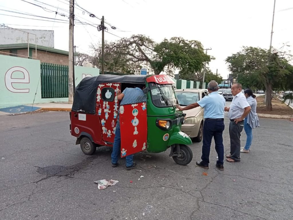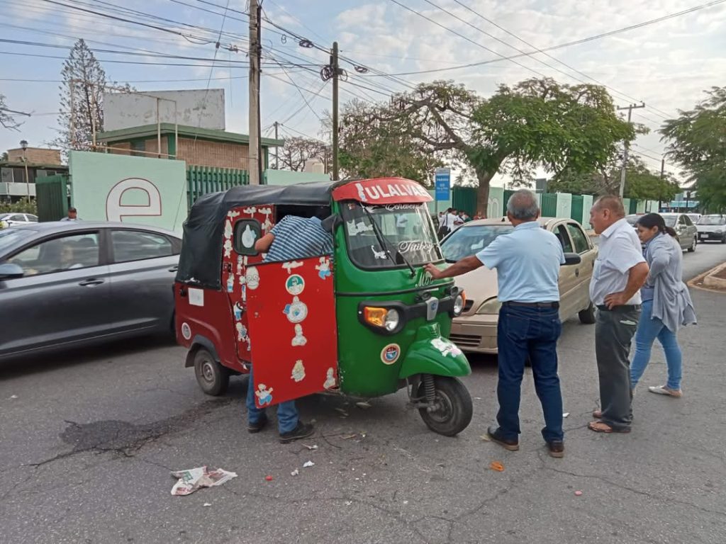 El conductor del corsa por más que intentó frenar no pudo evitar el impacto ocasionando que la moto se voltee de costado. El mototaxista se levantó como pudo y salió por su propio pie.
