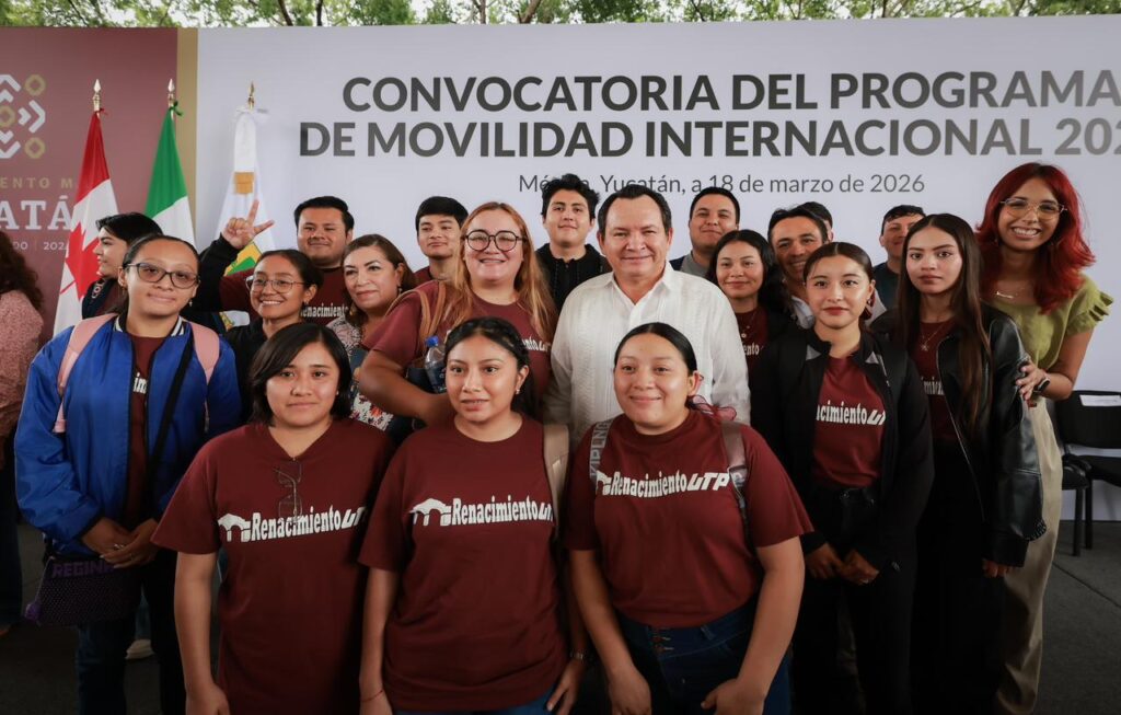 Mérida, Yucatán, a 18 de marzo de 2026.- El Gobernador Joaquín Díaz Mena anunció el lanzamiento del Programa de Movilidad Internacional 2026, mediante el cual el Gobierno del Renacimiento Maya destinará cerca de 18 millones de pesos para que 120 estudiantes y académicos yucatecos realicen estancias de formación en el extranjero, iniciativa que forma parte de la estrategia para fortalecer el capital humano del estado.