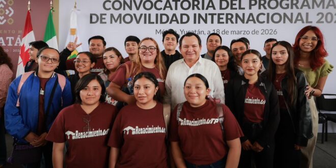 Mérida, Yucatán, a 18 de marzo de 2026.- El Gobernador Joaquín Díaz Mena anunció el lanzamiento del Programa de Movilidad Internacional 2026, mediante el cual el Gobierno del Renacimiento Maya destinará cerca de 18 millones de pesos para que 120 estudiantes y académicos yucatecos realicen estancias de formación en el extranjero, iniciativa que forma parte de la estrategia para fortalecer el capital humano del estado.