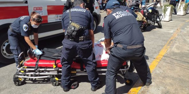 Luego de platicar con él, lograron convencerlo de bajar el arma y lo hicieron sentarse en una banqueta, en donde se le atendió de urgencia, pidiéndose el apoyo de una ambulancia de la SSP que llegó al sitio, se encamilló al sexagenario y se le llevó de inmediato al Hospital O’Horán.