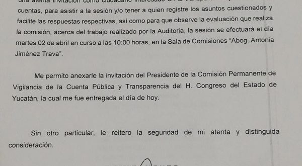 Dicha invitación tiene por objeto que el titular de la ASEY observe la evaluación que esta comisión realizó sobre informe de resultados de la cuenta pública 2017, y al mismo tiempo, permita que los trabajos que se realizarán tengan respuesta y se realicen con transparencia.