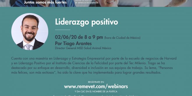 Ciudad de México, a 1 de junio de 2020.- A través de una serie de webinars dirigidos principalmente al gremio Veterinario, MSD Salud Animal en México busca fortalecer su misión de fomentar un desarrollo sano y equilibrado de sus diferentes públicos, por lo que invita este martes 2 de junio a las 8:00 pm a la sesión inaugural “Liderazgo Positivo” impartida por Tiago Arantes, Director General de MSD Salud Animal en México.