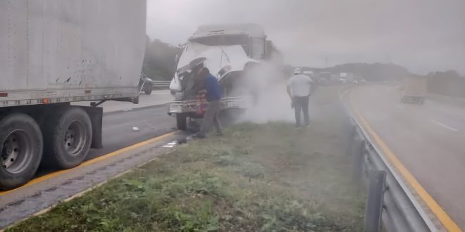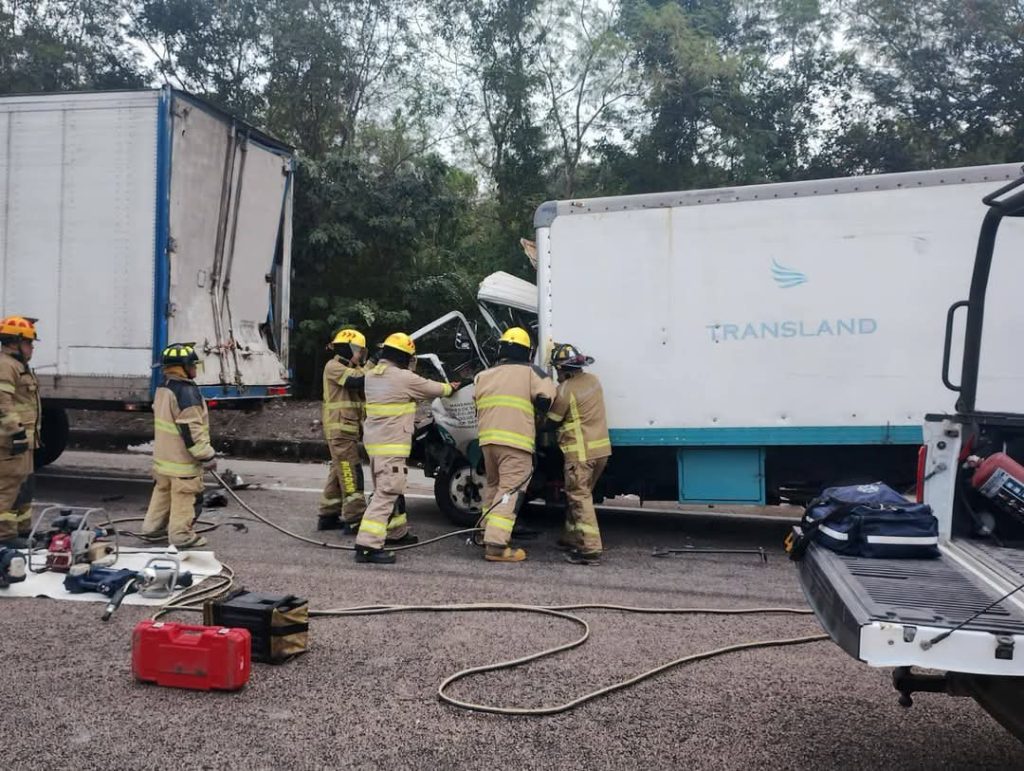 Al parecer la falta de visibilidad por la densa neblina fue la causa de que el conductor de dicha unidad no midiera la distancia y se impactara hasta terminar prensado dentro de la cabina del vehículo.