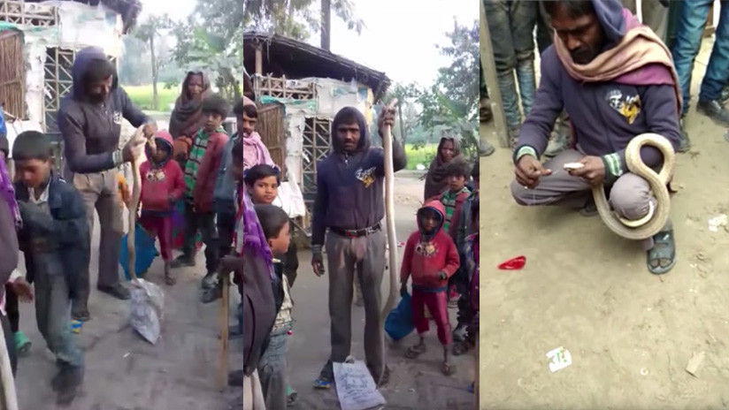 Bhola Nath, un conductor de automóviles del estado de Bihar, India, tropezó con una serpiente y decidió atraparla.