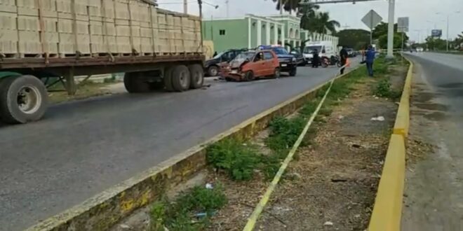 MÉRIDA, Yuc., 12 de abril 2022.- Un fuerte accidente se registró esta madrugada en la carretera Mérida- Cancún en dónde desafortunadamente el copiloto de un Atos falleció. Hasta donde averiguamos el hecho ocurrió cuando el conductor perdió el control y chocó contra la parte trasera de un trailer qué estaba estacionado en la lateral.