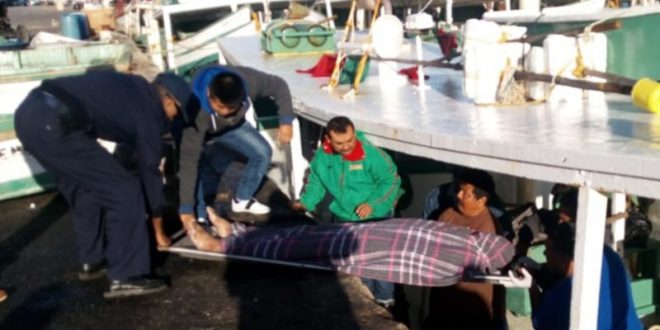 El cuerpo del pescador fue desembarcado a las 8 de la mañana y lo trasladaron a la funeraria.