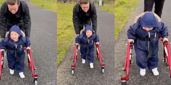 Heyley Morgan, la mamá del niño, compartió emocionada el video en Twitter, celebrando los primeros pasos de su hijo, con una emotiva descripción, “mi guerrero de la parálisis cerebral”.
