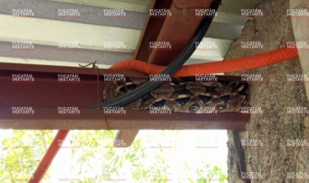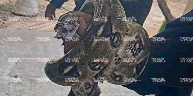 Tizimín, Yuc., a 12 de abril.- Una enorme boa hizo gritar ¡uay! a doña María, de 41 años de edad, quien disponía a lavar ropa y de pronto miró hacia el techo de su lavadero y vio enroscado a una ‘ochkán’ en un polin.