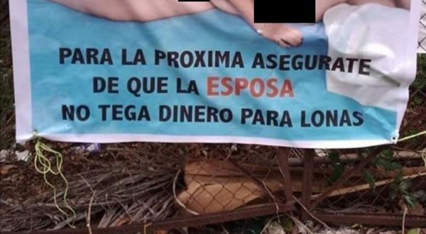 Cancún, Quintana Roo.- Habitantes de la isla de Cozumel quedaron con la boca abierta al toparse con una lona donde se exhibe a una mujer desnuda, acusada de ser la amante. La foto ya se volvió viral en las redes sociales.