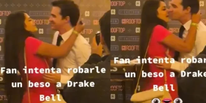 En el video, compartido por una usuaria en TikTok, se observa el momento en el que una fan vestida de rosa se acerca a Drake Bell para tomarse una foto. Al despedirse, la seguidora lo besa en los labios sin previo aviso, causando evidente incomodidad en el cantante.