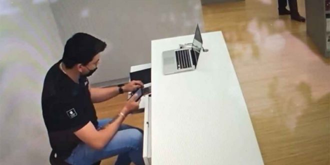 Informó que las cámaras de seguridad del negocio captaron el momento en que el empleado se encuentra manipulando el celular sin seguir los protocolos.