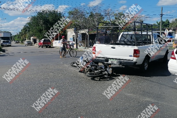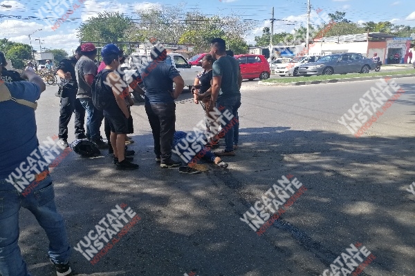 MÉRIDA, Yuc., 28 de diciembre de 2019. – Una joven motociclista de aproximadamente 24 años fue embestida y arrastrada por una camioneta Nissan en el sur de Mérida, por fortuna salvó la vida.