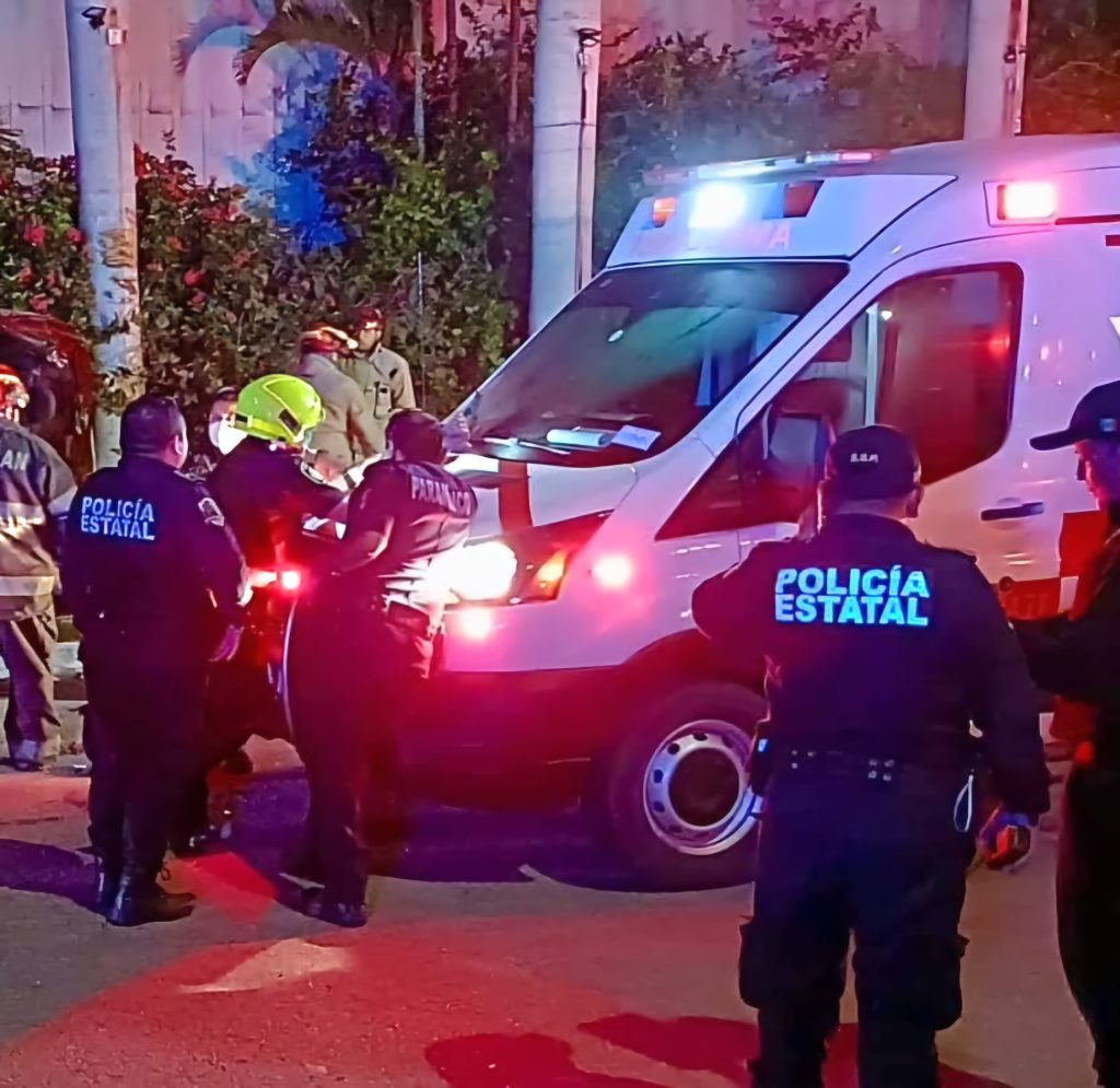 El v¡ol3nto choque movilizó a cinco ambulancias y varias patrullas al lugar. Luego de rescatar a la guiadora atrapada por los bomberos al usar las “quijadas de la vida”, toco el turno a los paramédicos de la SSP Yucatán para trasladar a un hospital en estado delicado