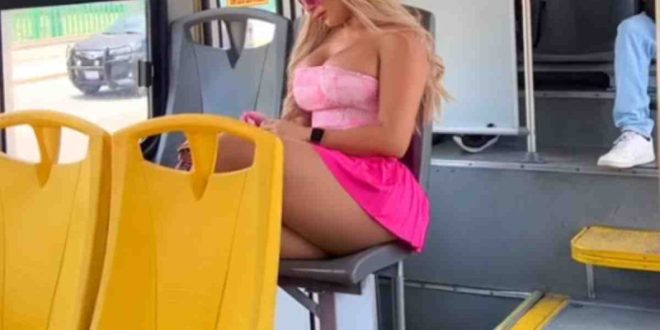 Una mujer guapa está causando sensación en redes sociales tras subir al Metrobús con su ajustada ropa para ver la película de Barbie.