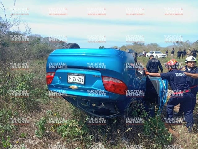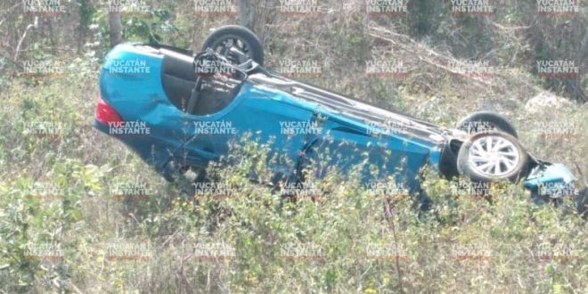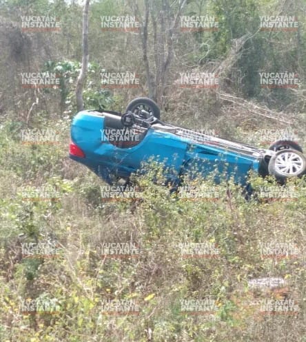 Hunucmá, Yuc., a 15 de febrero 2024.- La señora Sandra R. G., de 57 años quien iba al mando de un vehículo Aveo acabo volcando a la altura del kilómetro 20 de la conocida vía Mérida-Tetiz, alrededor de este mediodía.