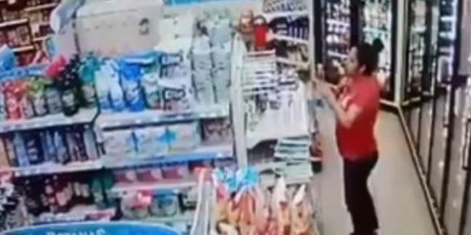 El acto de la mujer fue captado por las cámaras del establecimiento, la mujer entró a la tienda y al momento de querer comprar algo de botana se fue hasta el fondo del establecimiento para tomar una botella de un liquido limpiador.