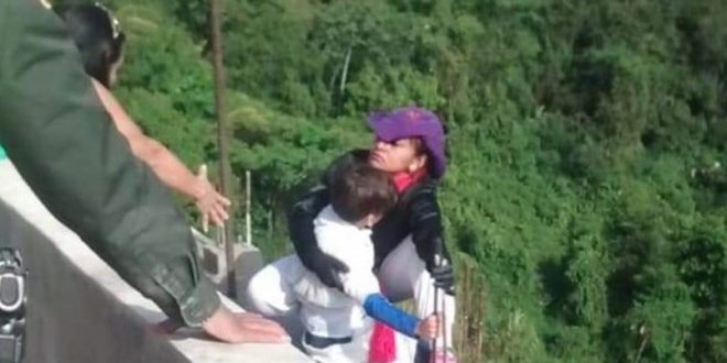 Captan en video como una mujer se suicidó con su hijo de 10 años en brazos lanzándose de un puente en Colombia.