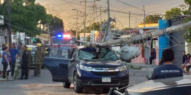 Una mujer sobrevivió a un accidente en la colonia Vicente Solís: un poste de la CFE se cayó encima de su camioneta. El accidente ocurrió en la calle 81A con 34 de dicha colonia
