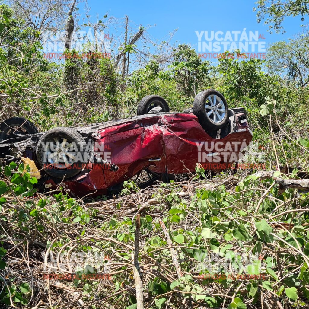 Mujer vuelca su automóvil en la Kinchil-Celestún