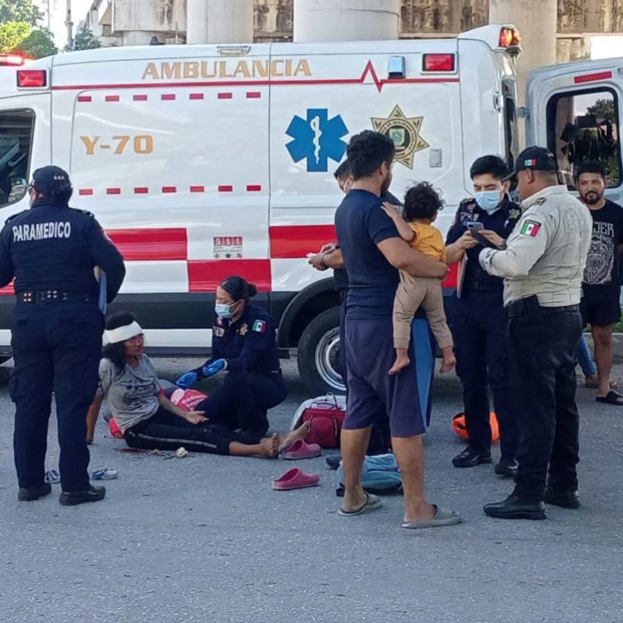 MÉRIDA, Yuc., 09 de septiembre 2025.- Paramédicos de la SSP Yucatán atendieron a una mujer y a su bebé, quienes fueron atropelladas por una camioneta en uno de los retornos que están debajo del puente del Anillo Periférico de Mérida en la salida de la calle 50 hacia Xmatkuil.